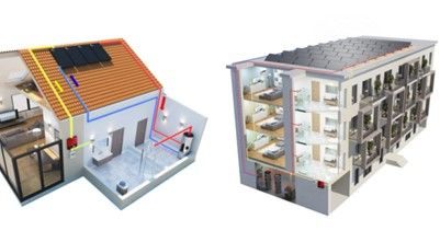 Figur 3. Hybridpaneler är lämpliga för både mindre system så som villor och större bostadhus. Bild: DualSun.
