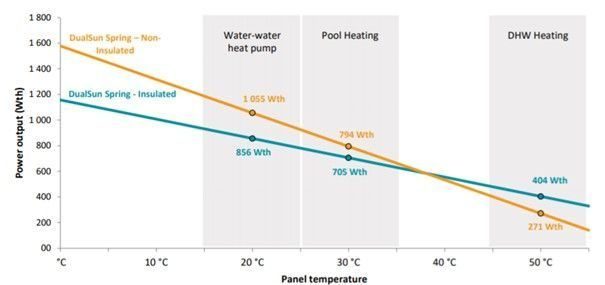 Figur 6. Termisk uteffekt som en funktion av panelens vattentemperatur. Bild: DualSun