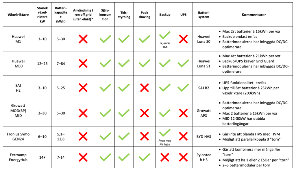 Kompatibla energilager och växelriktare: