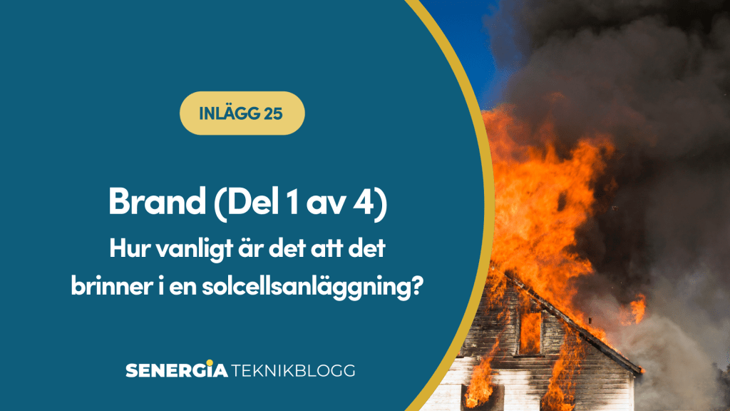 En solcellsanläggning är inte farligare än någon annan elektrisk installation. Det är fortfarande väldigt ovanligt att solcellsanläggningar fattar eld och brinner. Man skall inte som privatkund, företag eller någon annan vara rädd för att investera i en solcellsanläggning, men man måste ha rätt tillvägagångssätt och kravställning så att anläggningen utformas och installeras på rätt sätt. Den absolut viktigaste partnern är installatören. Deras yrkesmässighet, yrkeskunskap och yrkesstolthet kommer vara avgörande för att anläggningen kan ha problemfri drift. Se till att valet av komponenter motsvarar dina högs ställda krav och pruta aldrig med säkerheten. Det är ca 2 av 10 000 anläggningar som orsakar brand i någon omfattning och det går att minska risken med rätt material, rätt projektering, rätt kunskap och rätt installationsförfarande! I nästa inlägg i Teknikbloggen kommer vi djupdyka i just det!
