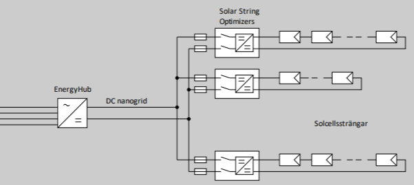 Figur 2. SSOer med strängar av olika längd och paneler kan kopplas samman mot DC Nanogrid
